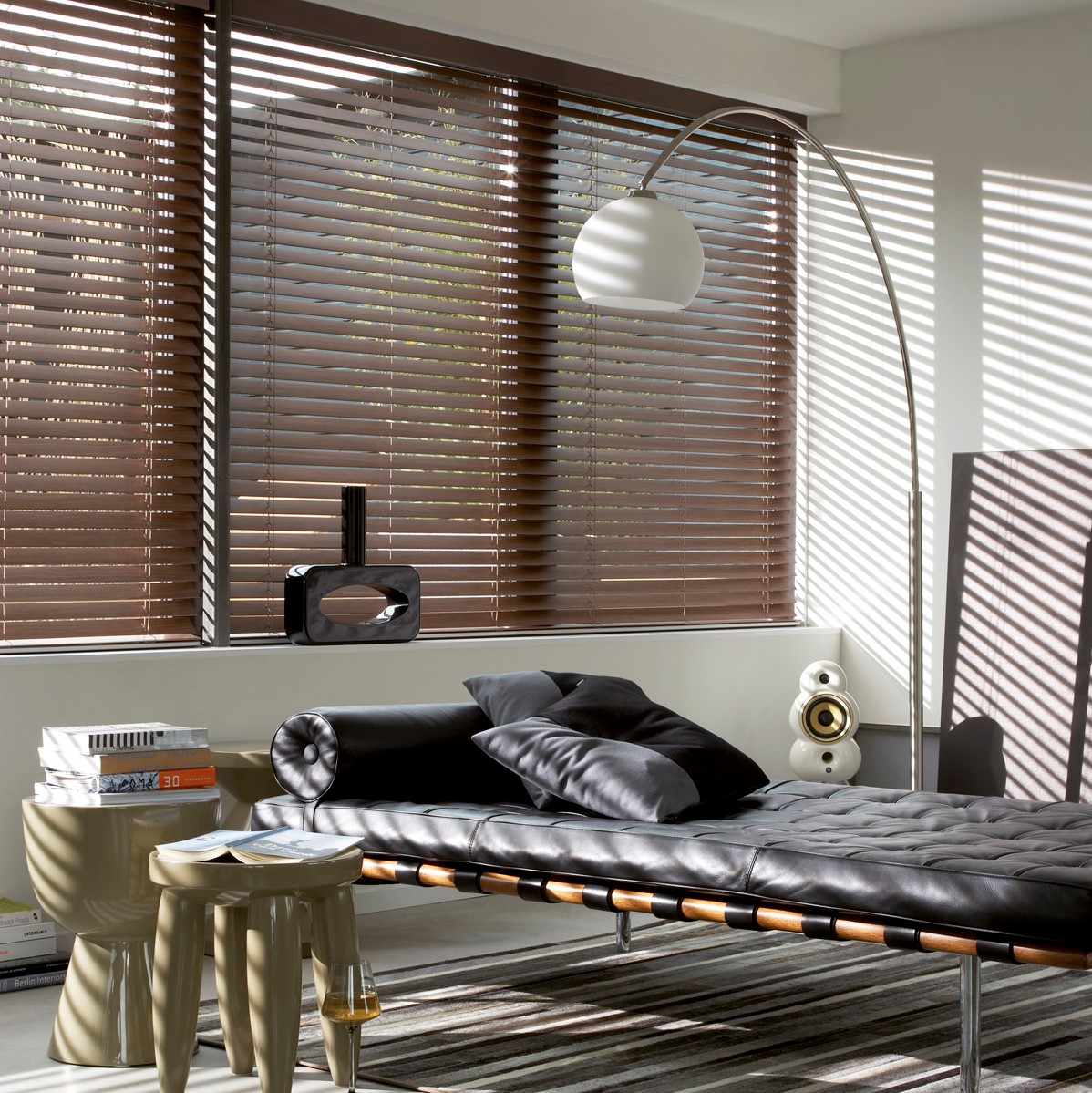 Las persianas de madera te permitirán un balance perfecto de luz y privacidad al ajustar las laminillas.